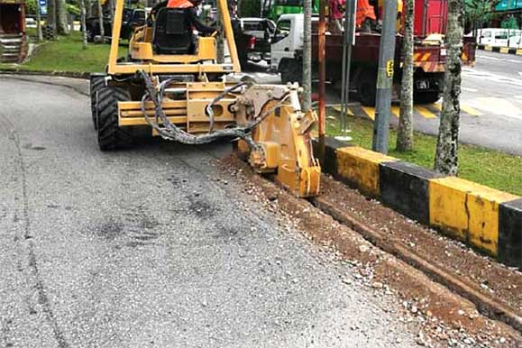 UUE Holdings Berhad recognizes the significance of Micro Trenching as a cost-effective method for deploying cables, particularly for broadband networks, in urban environments. This innovative approach employs a specialized tool known as a micro trencher, purpose-built for urban settings. Equipped with a precision cutting wheel, the micro trencher excels in creating micro-trenches with dimensions significantly smaller than those achievable using traditional trench digging equipment.